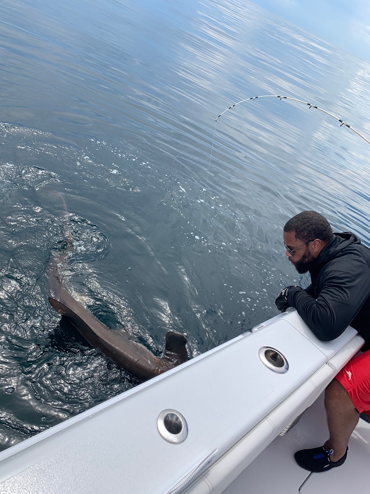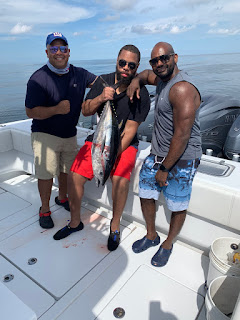 Had first time customer and first time offshore fisherman Mike with buddies Anthony and James. Made our way offshore and Mike landed his first tuna ever, lost a few more and bite was a very slow pick landing  some short unders. Decided to start popping since there were thousands on the surface. Was a good call had 5 bites landing one but crazy action and the guys never saw tuna before. After that did some sharking with Mike landing a 100lb  Hammerhead. Did some jigging on the wrecks to end the trip. Great bunch of guys look forward to seeing them later in the summer.