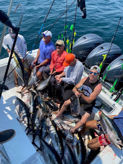 Had Capt Matty at the helm today. We hosted the Santone family today today for the first time on the Toy. They opted to jump on the 44FA and off they went. Capt Matty ran over Some life and went to work, he had 4 to 5 fish on at once keeping our mate Willy busy. Had the charter limit by 8am, then went into jig mode landing and releasing a bunch more. Total tally for the day was 23-24, on yellowfin. Congrats to the crew and charter on a great day!