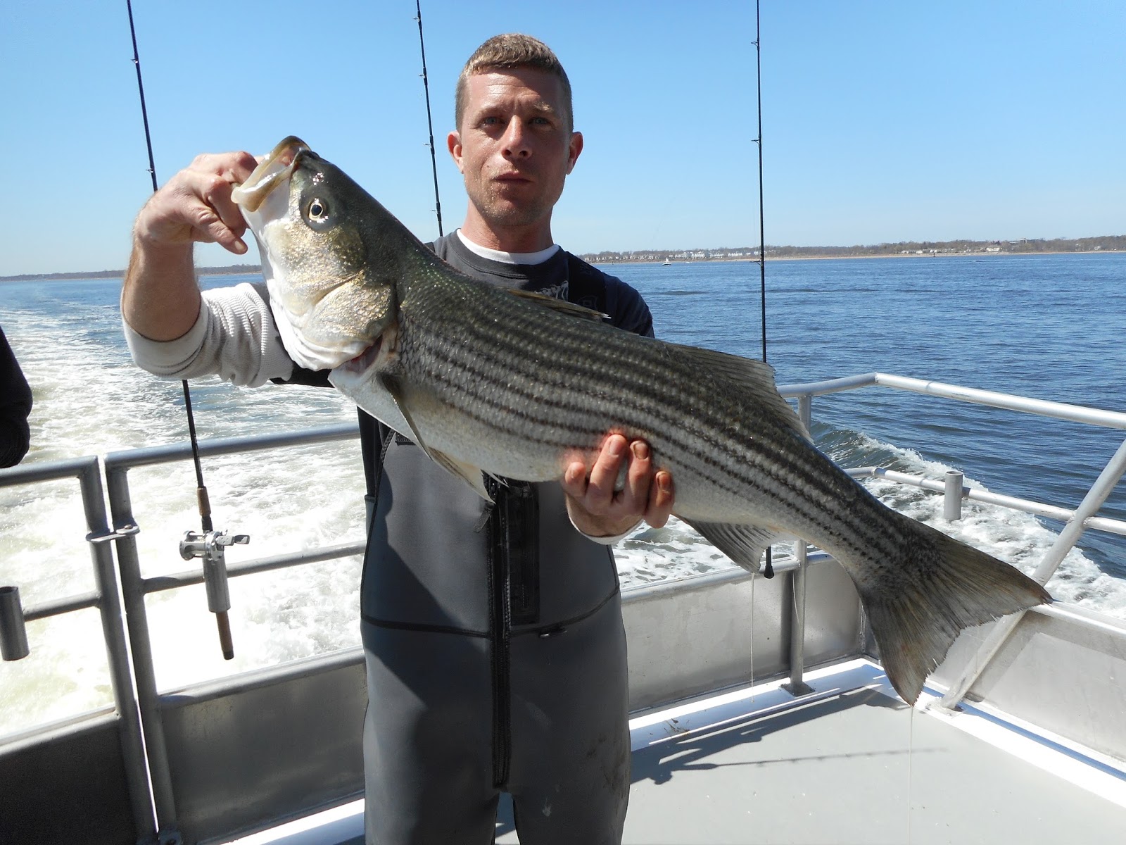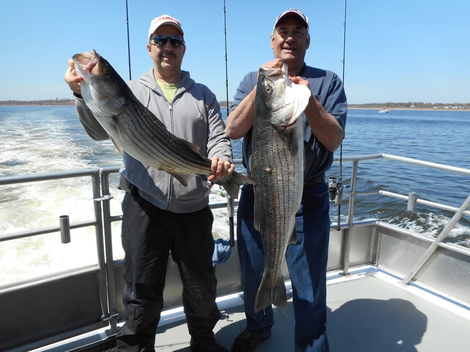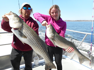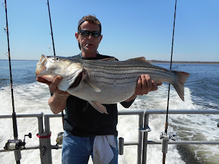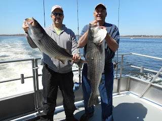 A definite improvement today over the past couple days with some big Stripers and a couple Blues and we lost a few. Tomorrows weather looks great!