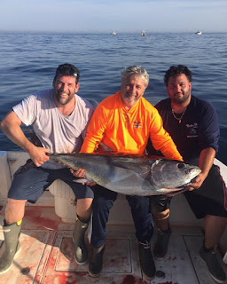 Had first time charter Amelio,'with Son Mike Luv Bug, And Veto Vin Diesel. Plan was to be a hands on learn  Trip. Told them the challenges of such trip to deal with  My demeanor, but he said, let's do it. Ran out and got  To the grounds and went on the troll, very obvious that  Wasn't the right move, went to the jig, and Amelio hooked A nice fish right away, boys did a great job on the fish and  The 56 incher was in the boat. Worked the numerous tuna Pods for a while till we hooked another one on a popper,  unfortunately chafed him off. After that heartbreaker, Gave the team a break and jigged up some nice cod. Then hit the pots for mahi but no life, went back on the troll But no more takers. Took a nice 40 knot cruise back to the dock. Crew did a great job today!