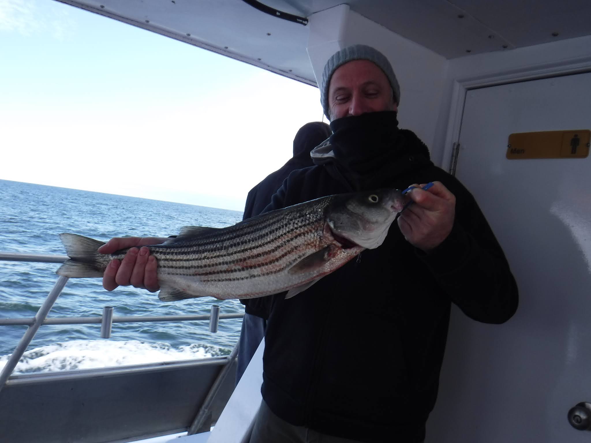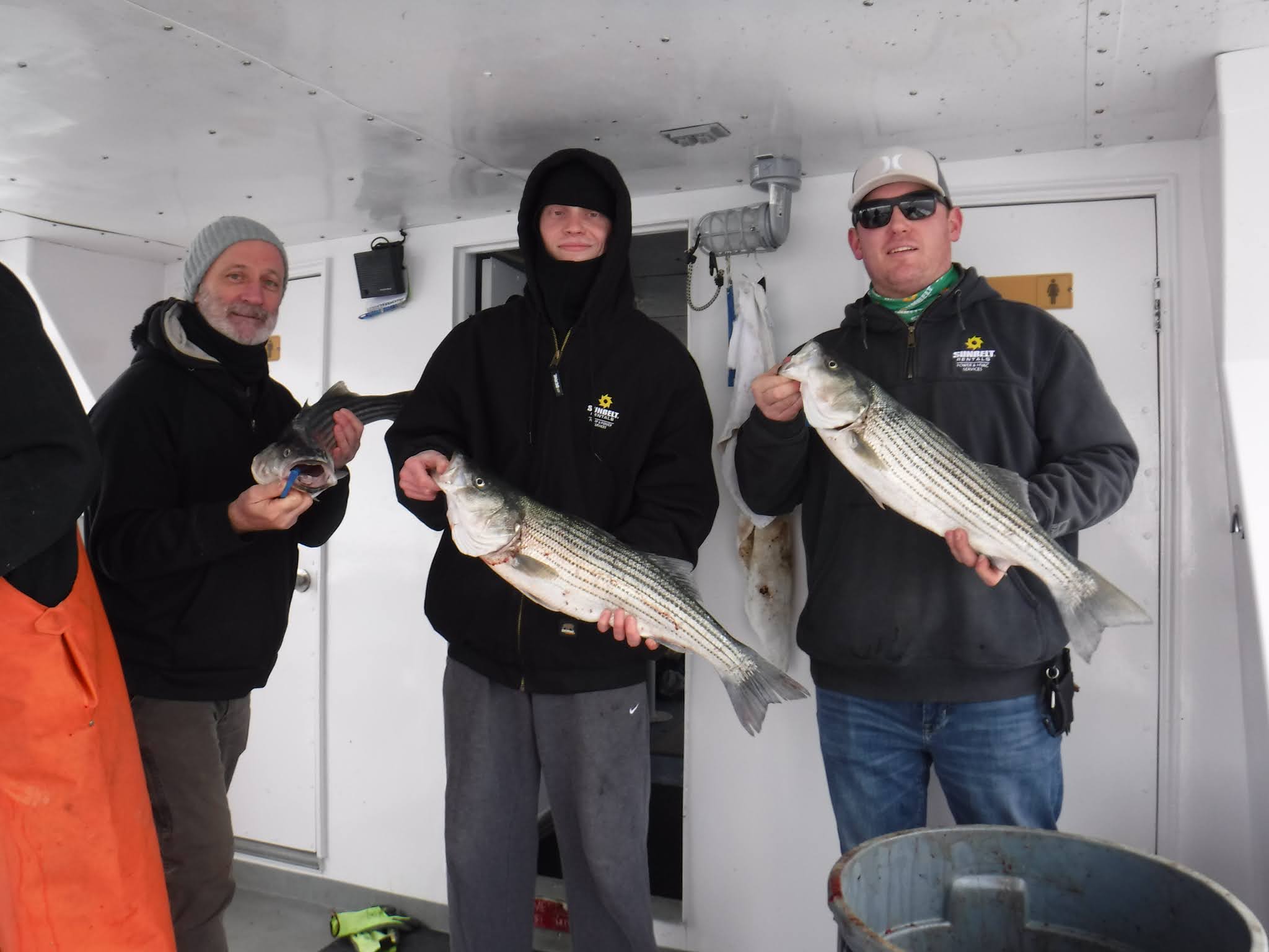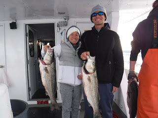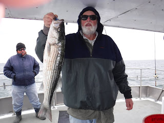 Another great day!!!. The Stripers were hungry all day today. Yesterday we had the drift of the year Today may have been the trip of the year as far as numbers go. After 9:00 it was catch and release and there was not much let up especially the last hour and a half it was non stop . There is a ton of Stripers around!!. So get them while the getting and the weather is good! The annual Thanksgiving Day trip is cancelled due to weather and lack of participation. We will be back at it on Friday, try to get there no later then 7:00am I would like to depart a little early if possible. Have a great Thanksgiving. See you soon, here are a few pics Capt. Rob