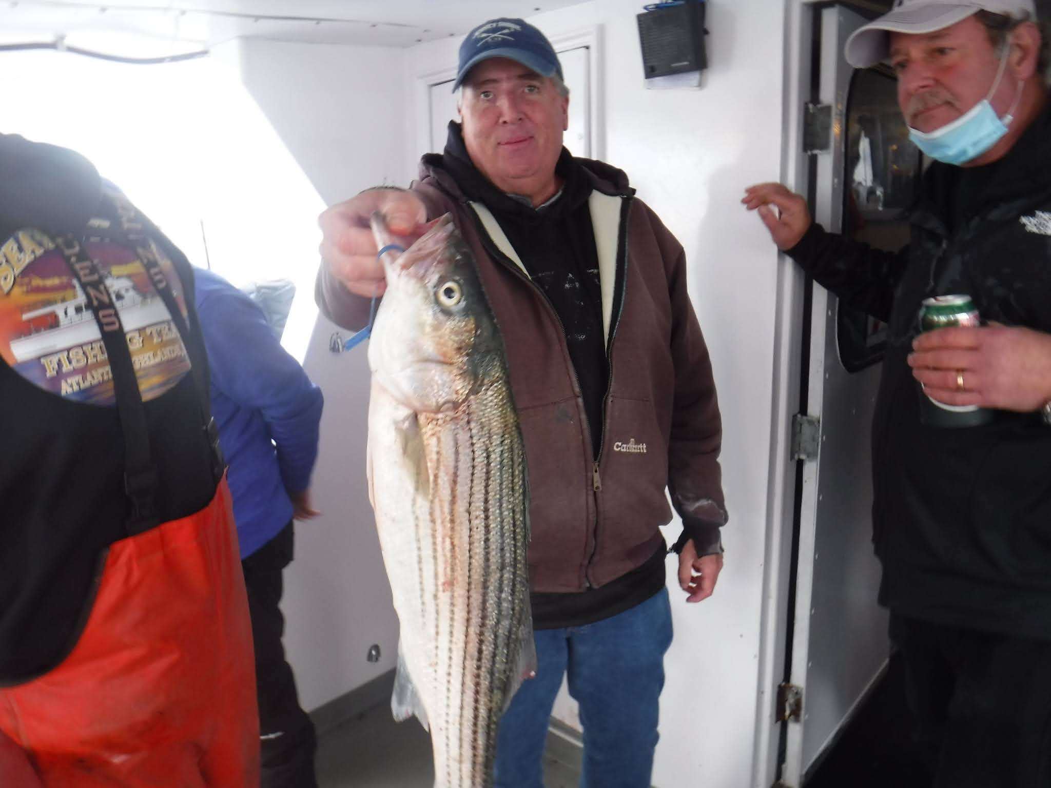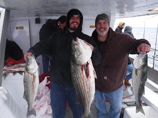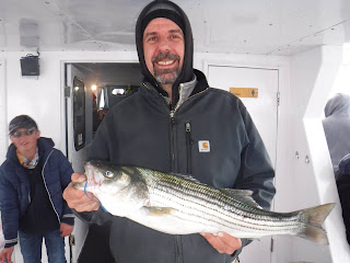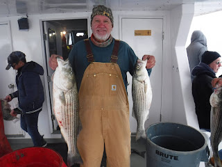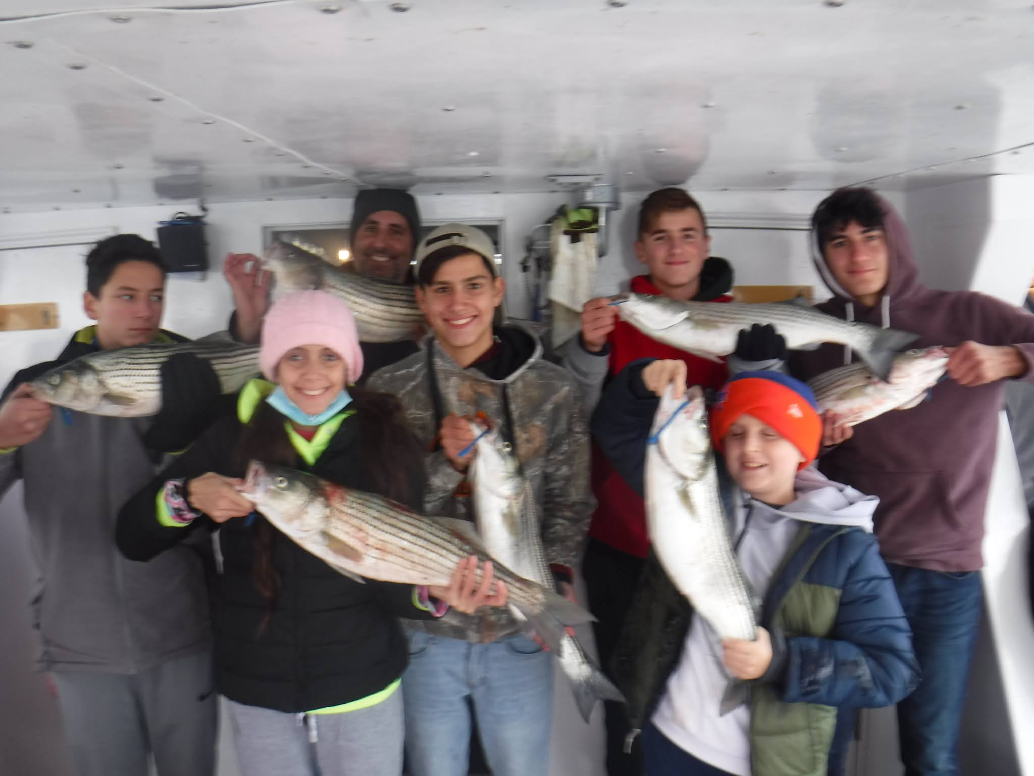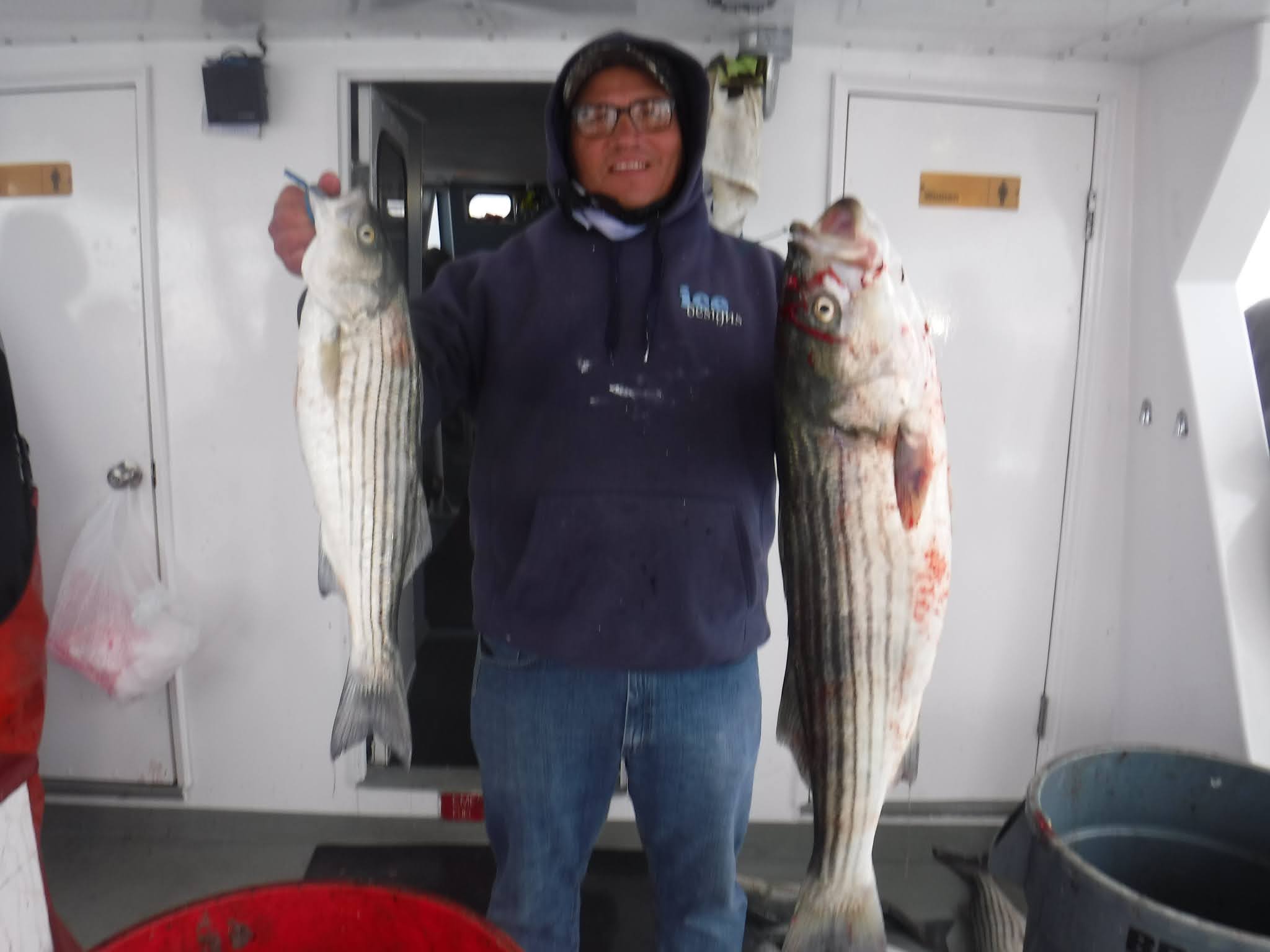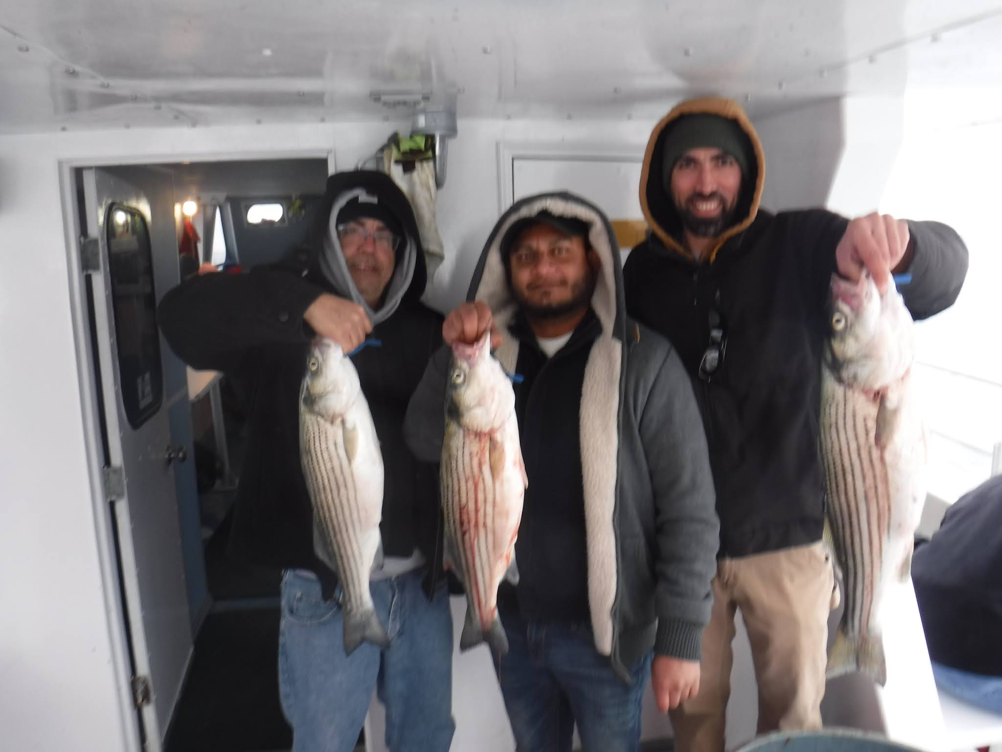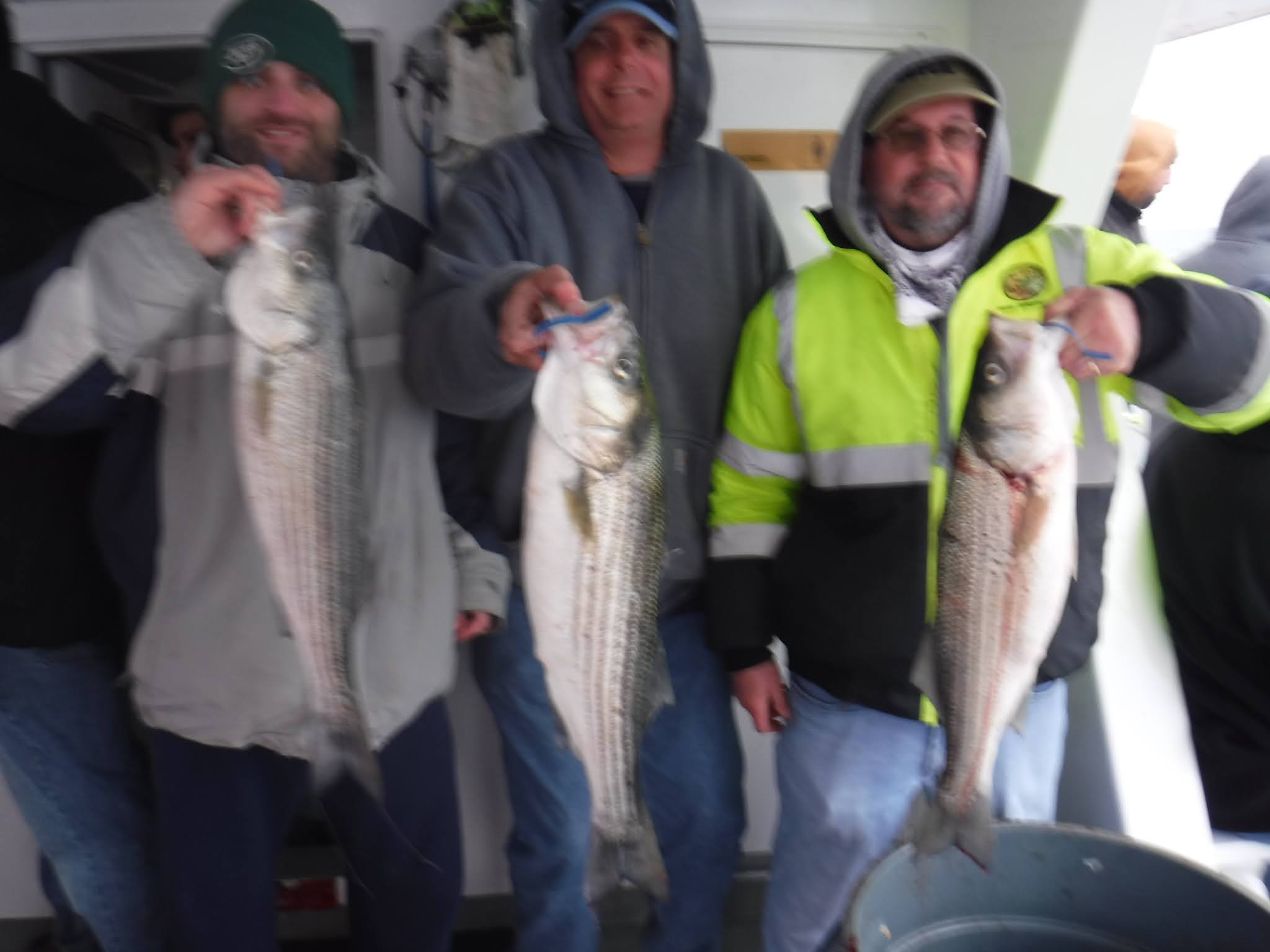 The first two and a half hours was like fishing in a barrel. I'm not sure how many fish are around but Holy Cow there is lots! And not in just one area. After 9:30 it was catch and release The late morning and early afternoon bite slowed to a pick. I'm not sure if it was because everyone was pretty wiped out after 11:00 or the fish just were not that hungry anymore. The fish finder was still showing plenty of fish. The pool winner again today was just under 38 inches. I would like to leave early again tomorrow so please try to be there 7:00 the latest. I'm sure you saw Mondays weather forecast so we will cancel Monday and probably Tuesday. Here are a few pics, See you tomorrow, Capt. Rob
