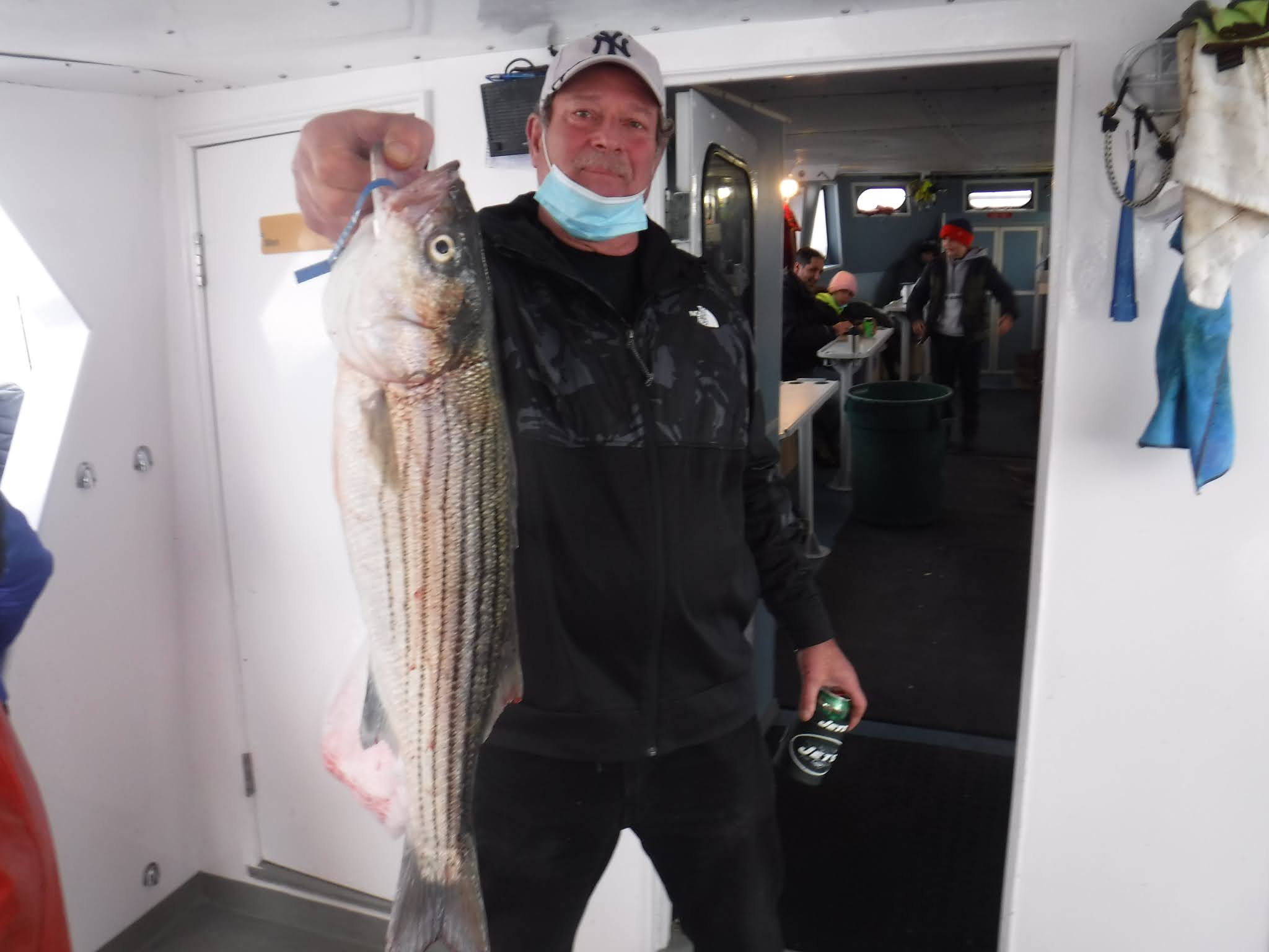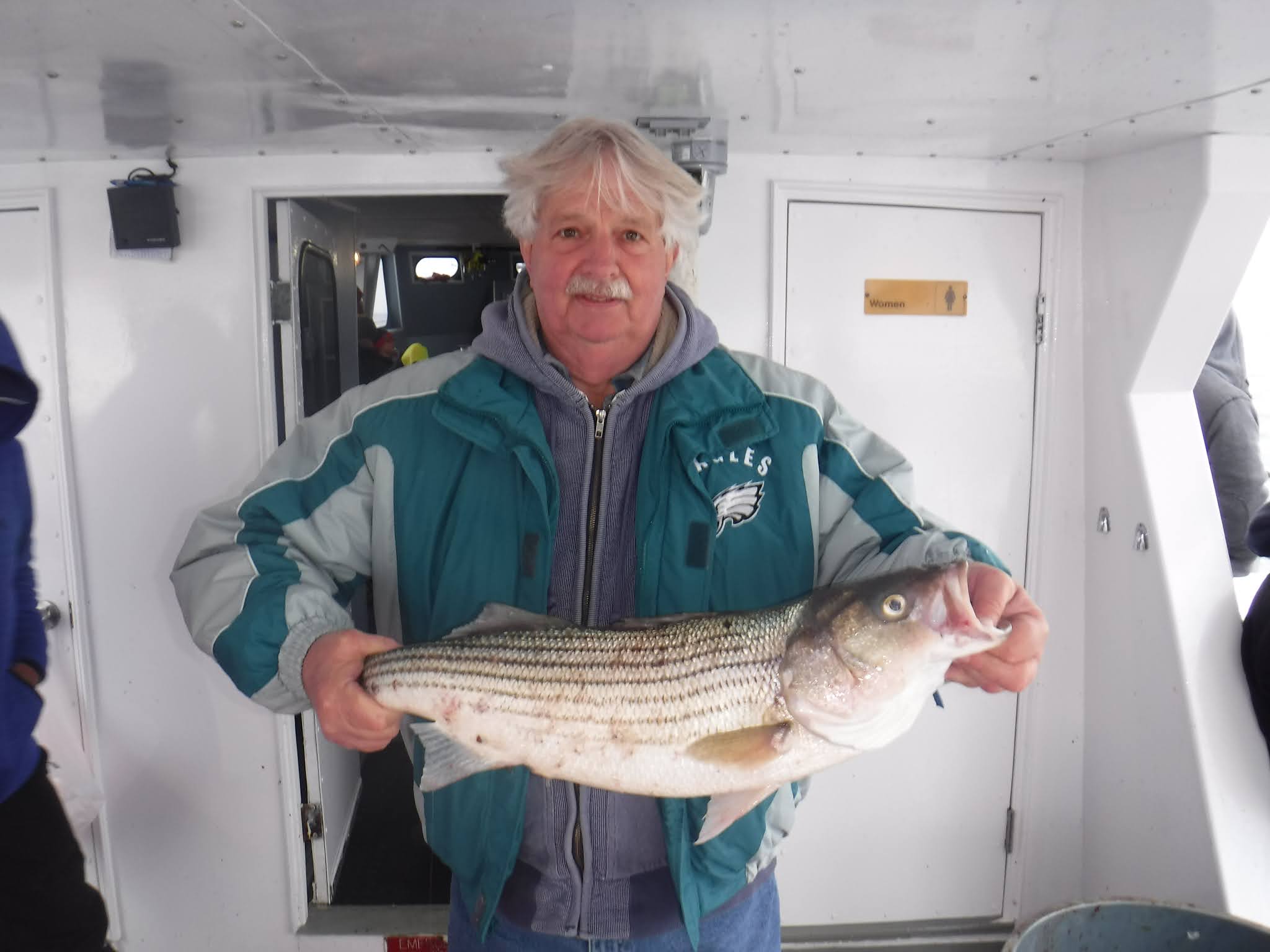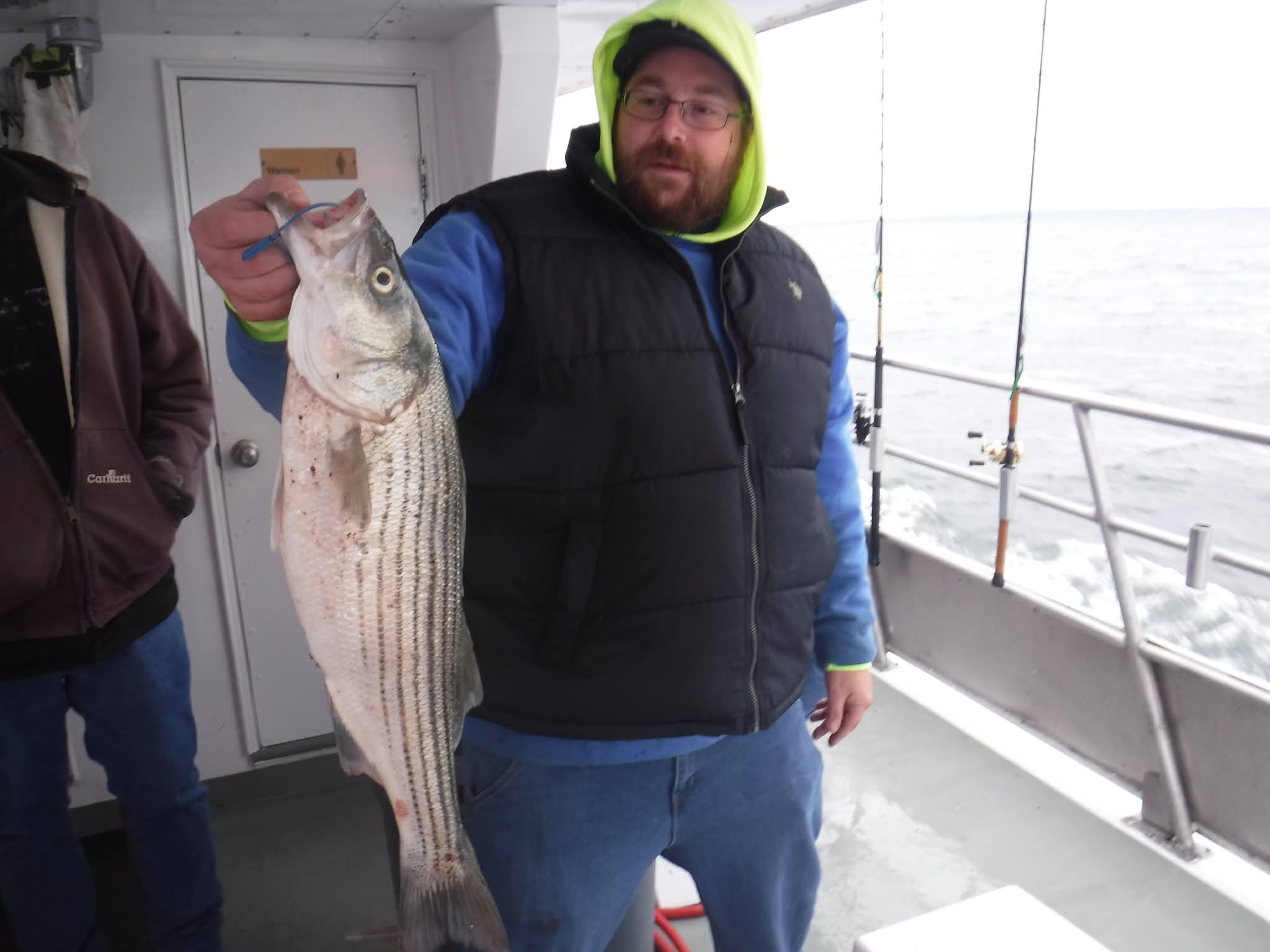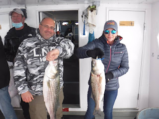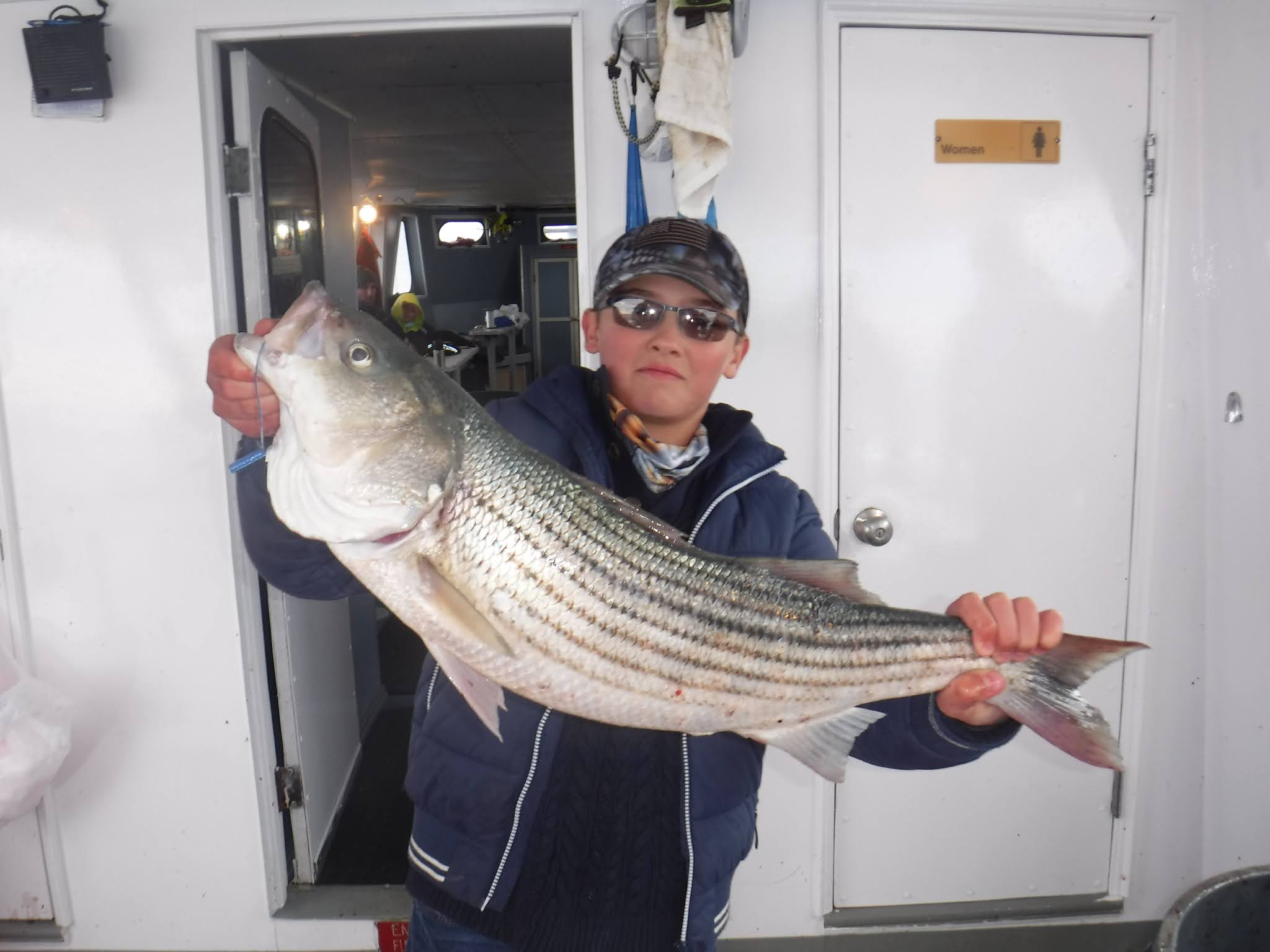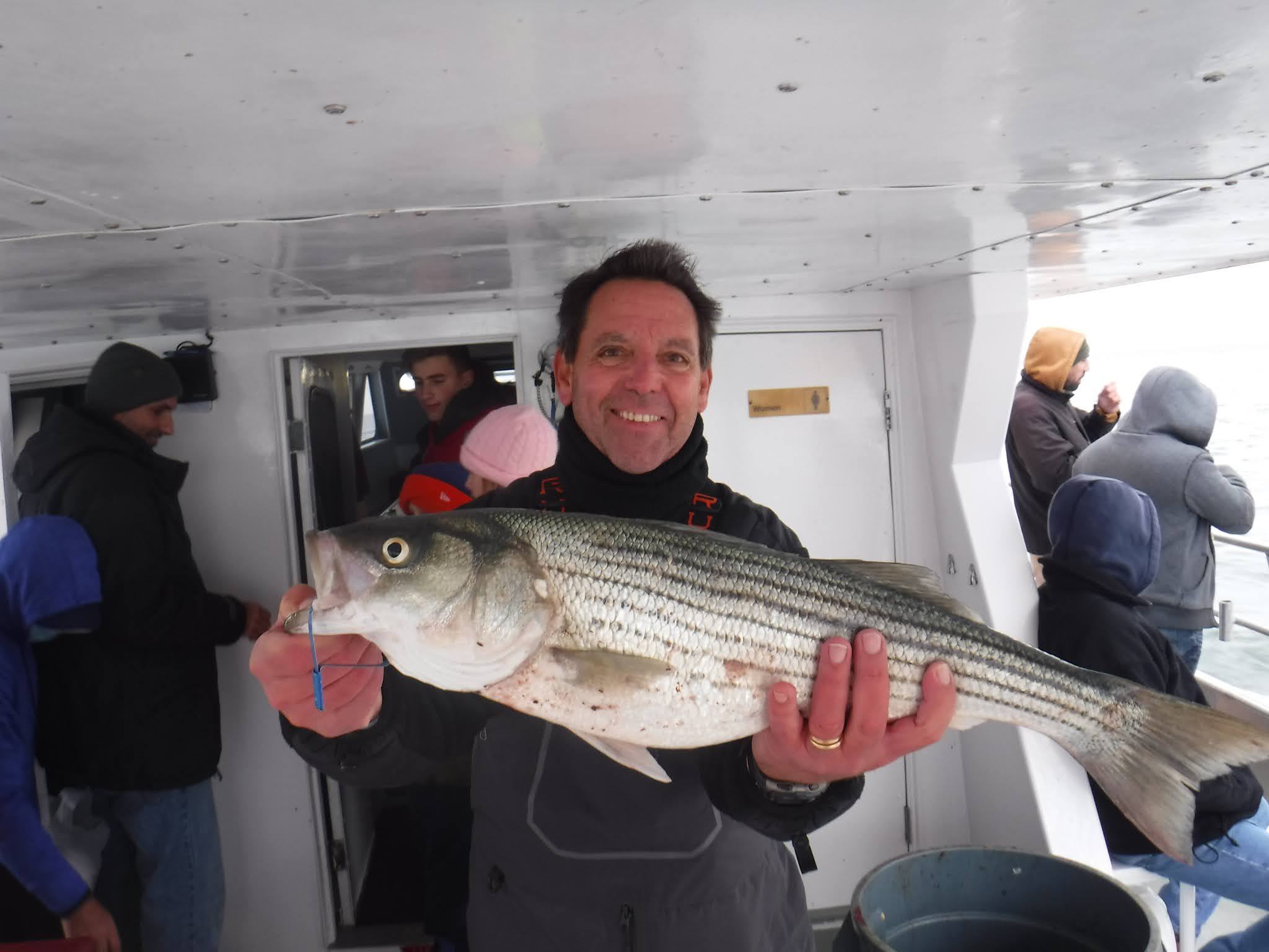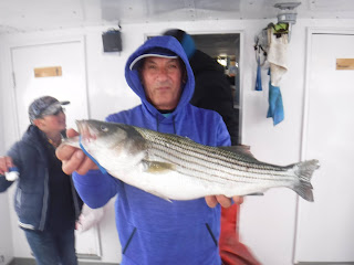 The first two and a half hours was like fishing in a barrel. I'm not sure how many fish are around but Holy Cow there is lots! And not in just one area. After 9:30 it was catch and release The late morning and early afternoon bite slowed to a pick. I'm not sure if it was because everyone was pretty wiped out after 11:00 or the fish just were not that hungry anymore. The fish finder was still showing plenty of fish. The pool winner again today was just under 38 inches. I would like to leave early again tomorrow so please try to be there 7:00 the latest. I'm sure you saw Mondays weather forecast so we will cancel Monday and probably Tuesday. Here are a few pics, See you tomorrow, Capt. Rob