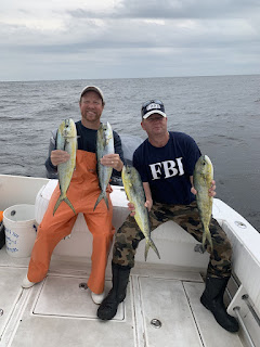Had first time customer Don Beshada with bro in law Steve. Plan was to mahi fish in the morning then chase tuna. Had plenty of mahi Bites in am landing a bunch then plan was to tuna hunt. Approaching storm and winds put an end to to that. Back to the dock before lunch so boys could have some mahi tacos!