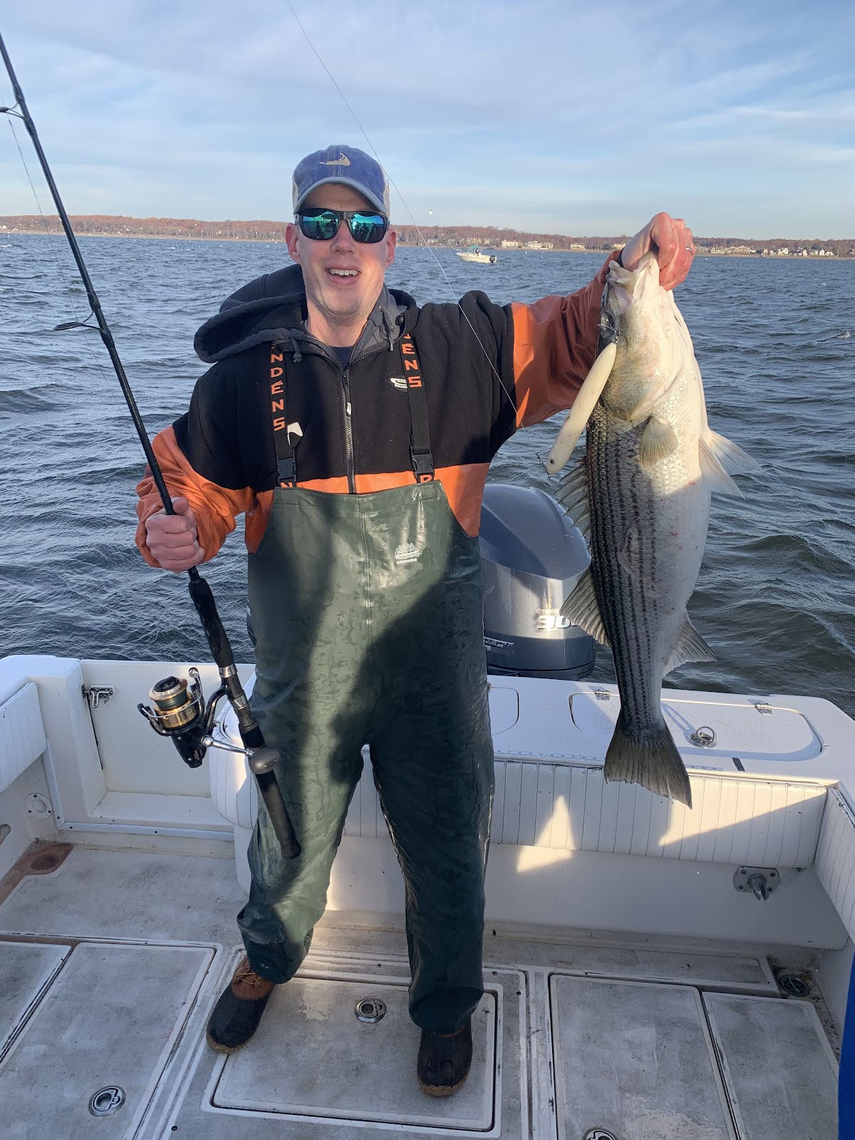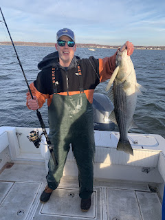 Insane top water feed this morning with the Bill Horning crew. Mike popping his Striper cherry and getting 10 on light tackle. We have over 30 with no let up in sight getting them on top water and shads.