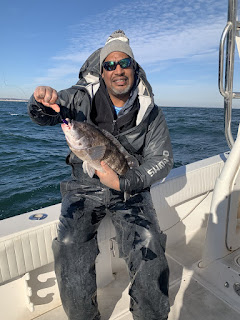 Had The Rivera boys Dave and Ray out today for a combo trip, boat move for the 31FA back to point. Started getting our limit on spoons in no time then went into release mode. Turned the hook and hit the reef for tog. First drop landed  a nice 23 incher, 10lb tog on Magictail tog jigs. First time using them was very impressed and look forward to using them for the rest of the season and beyond. Wound up with my limit on togs and sprinted for home.